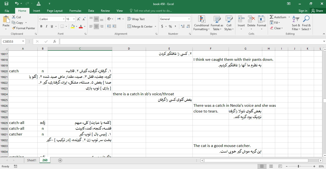 نمونه کار انجام شده در خصوص تایپ متن انگلیسی در اکسل
