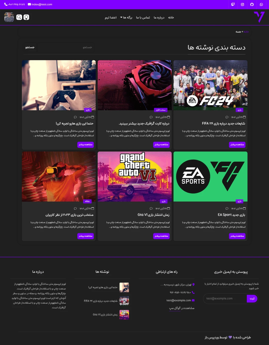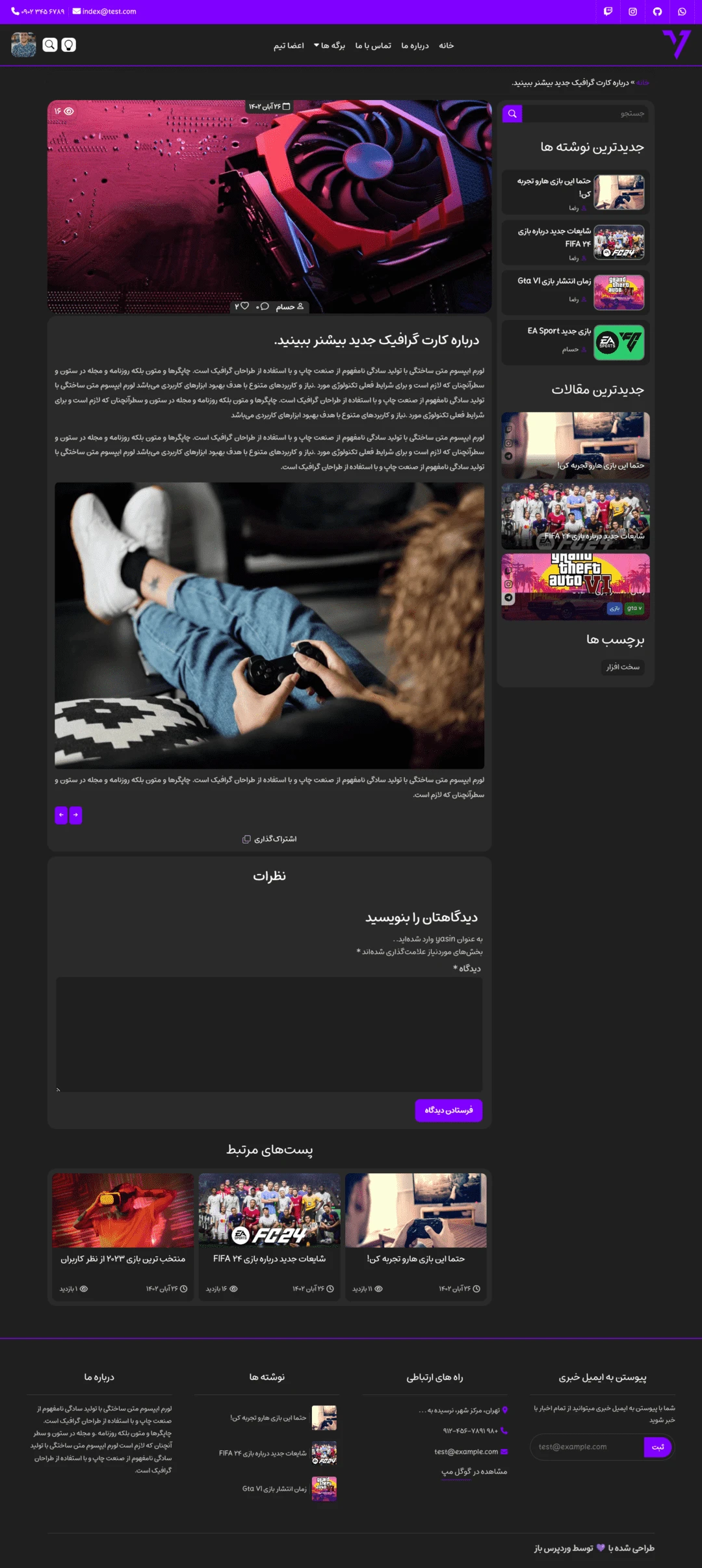 نمونه قالب وردپرسی طراحی شده توسط تیم آرُس - طراحی گیمینگ