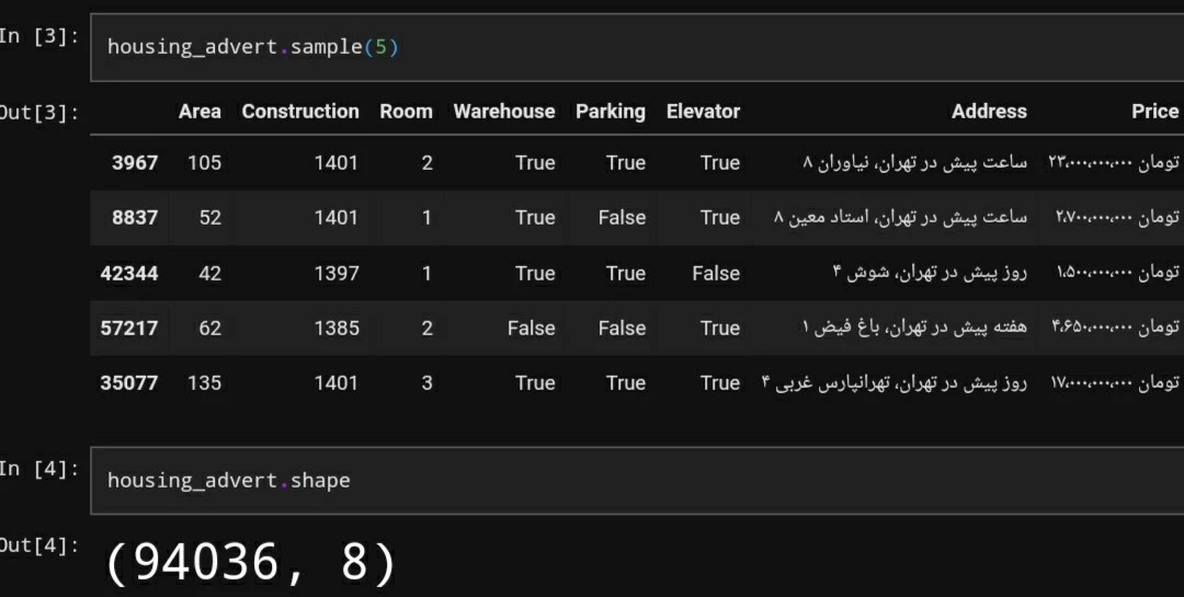 این دیتاست مربوط به حدود ۱۰۰ هزار خانه در تهران بوده که در سایت دیوار ثبت شده است