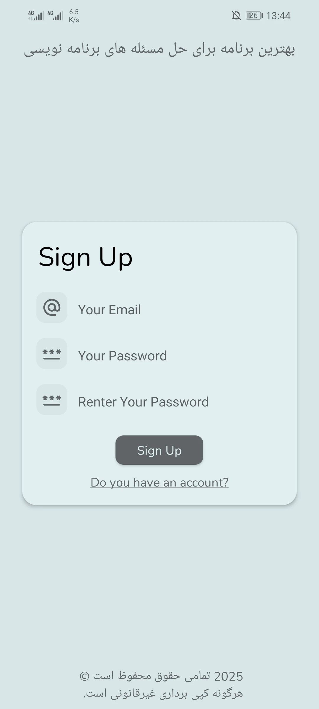 نمونه صفحه ثبت نام، اپلیکیشن جاوا