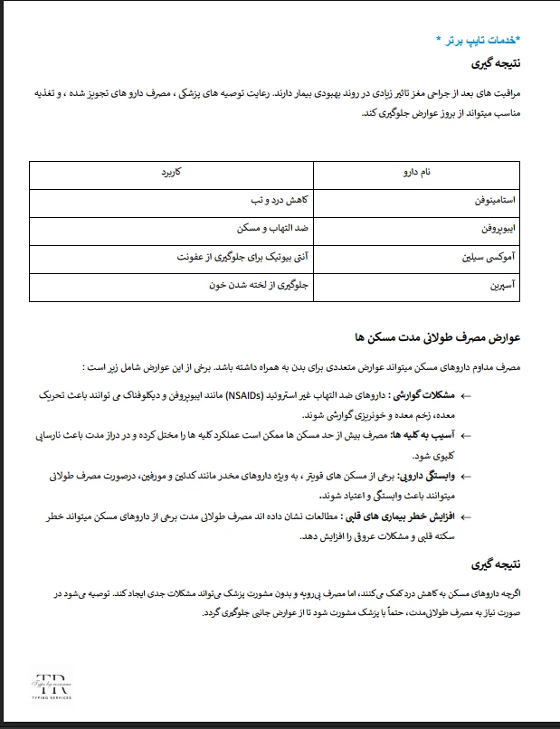 نمونه کار تایپ پزشکی(بسیار ساده)