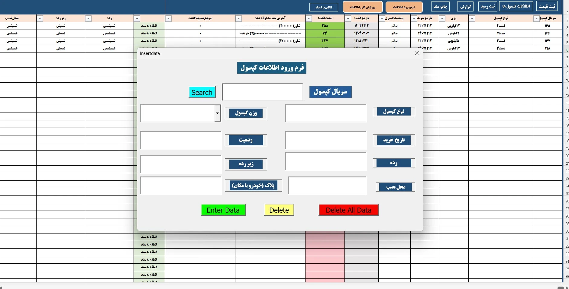طراحی داشبورد مدیریتی تحت اکسل برای مدیریت فروش و خدمات رسانی به کپسول های آتشنشانی