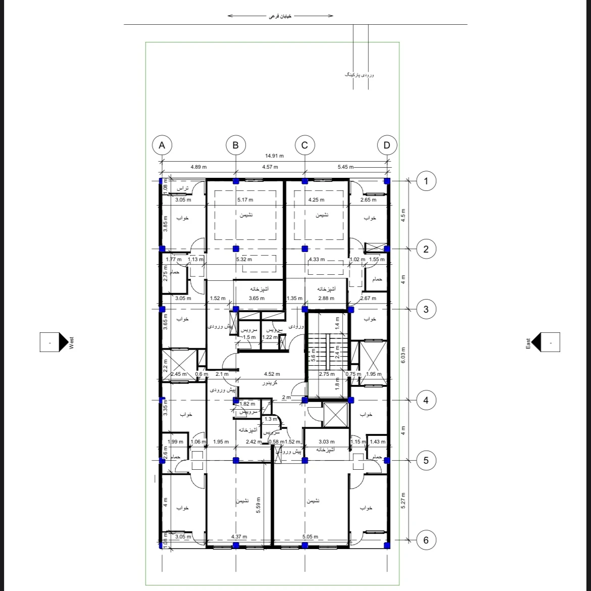 طراحی پلان ۴ واحدی ۸۰ متری طبق ضوابط شهرداری به همراه رعایت اصول اقلیمی