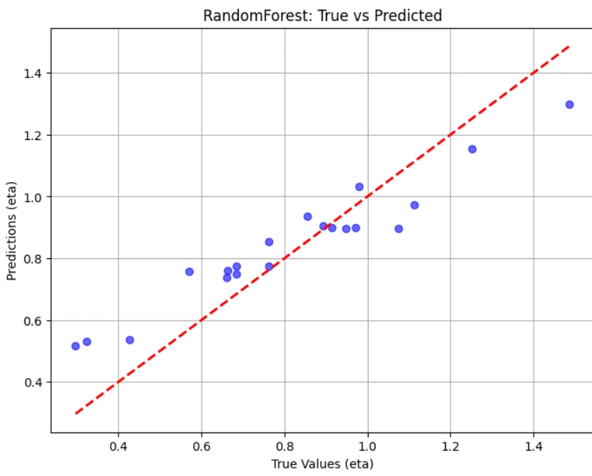 نمودار داده پیش بینی شده بر حسب داده درست ، تنها با 20 خط دیتا R^2 score=83