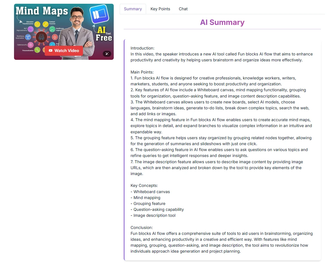 • Fetches transcripts using YouTube API