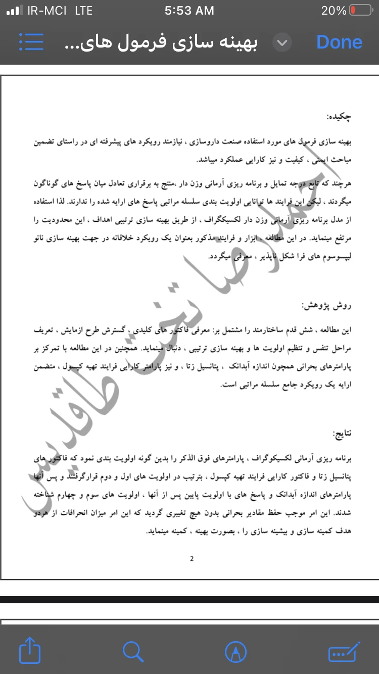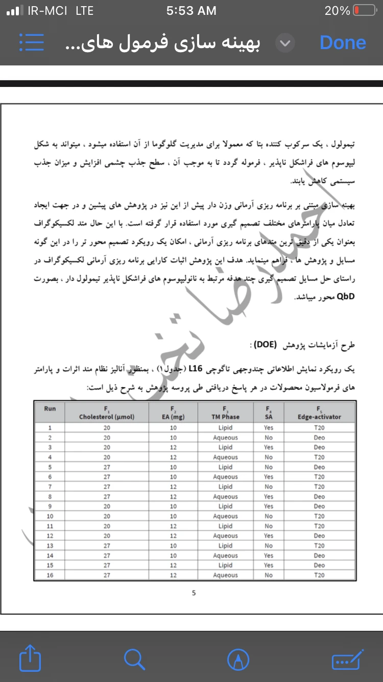 ترجمه مقاله : بهينه سازي فرمولاسيون هاي پيچيده صنعت داروسازي با استفاده از برنامه ريزي آرماني لكسيكوكراف و با مطالعه موردي فرمولاسيون نانوليپوسوم هاي تيمول دار