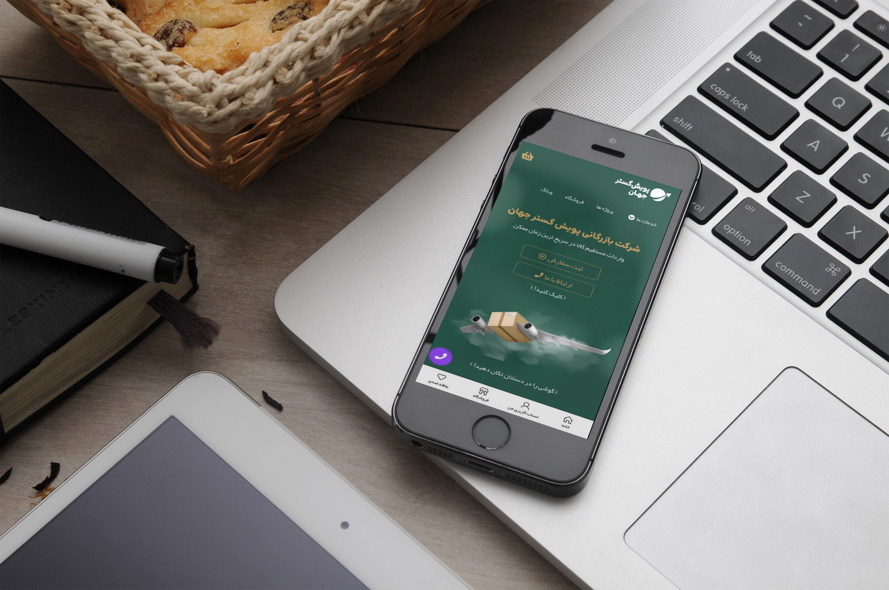 جاوا اسکریپت (برای استفاده از ژیروسکوپ گوشی در سکشن اول) و CSS و HTML سفارشی - طراحی لوگو - مگامنو در دسکتاپ