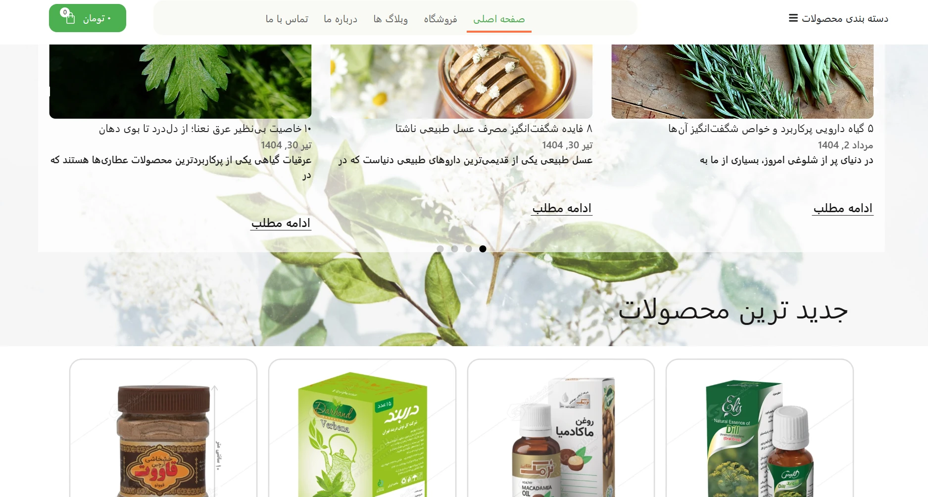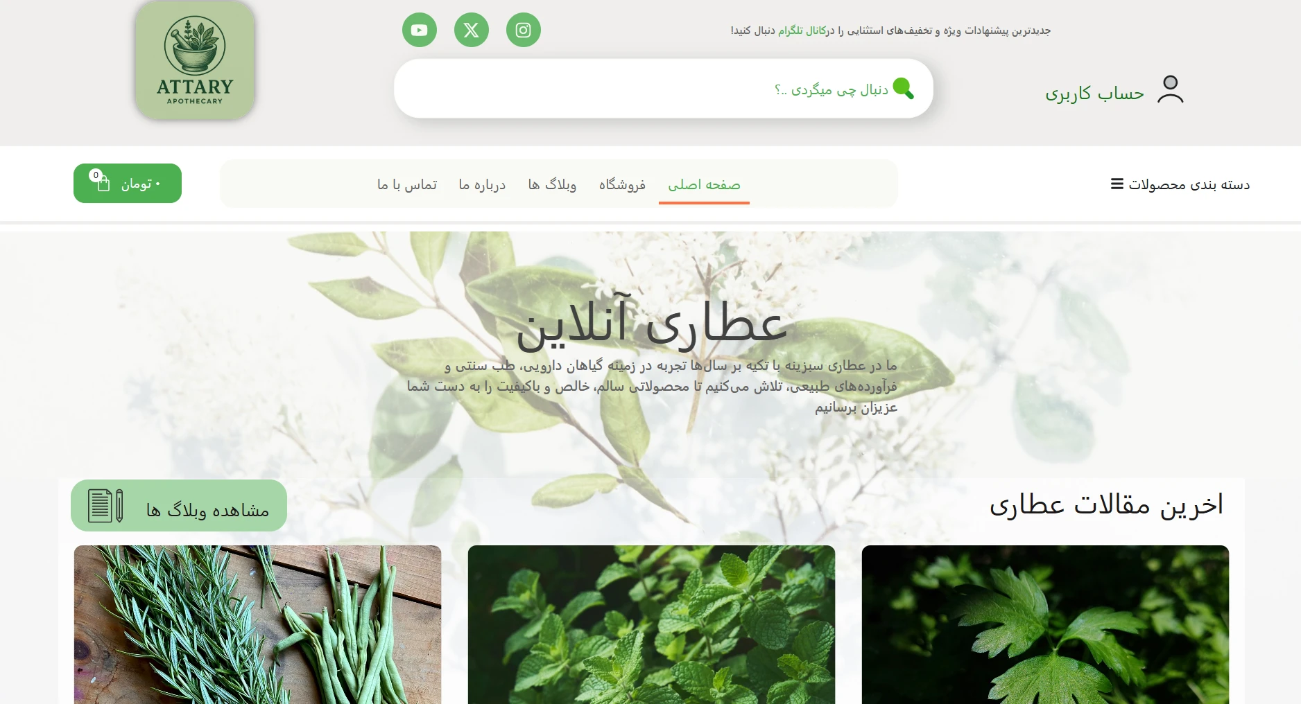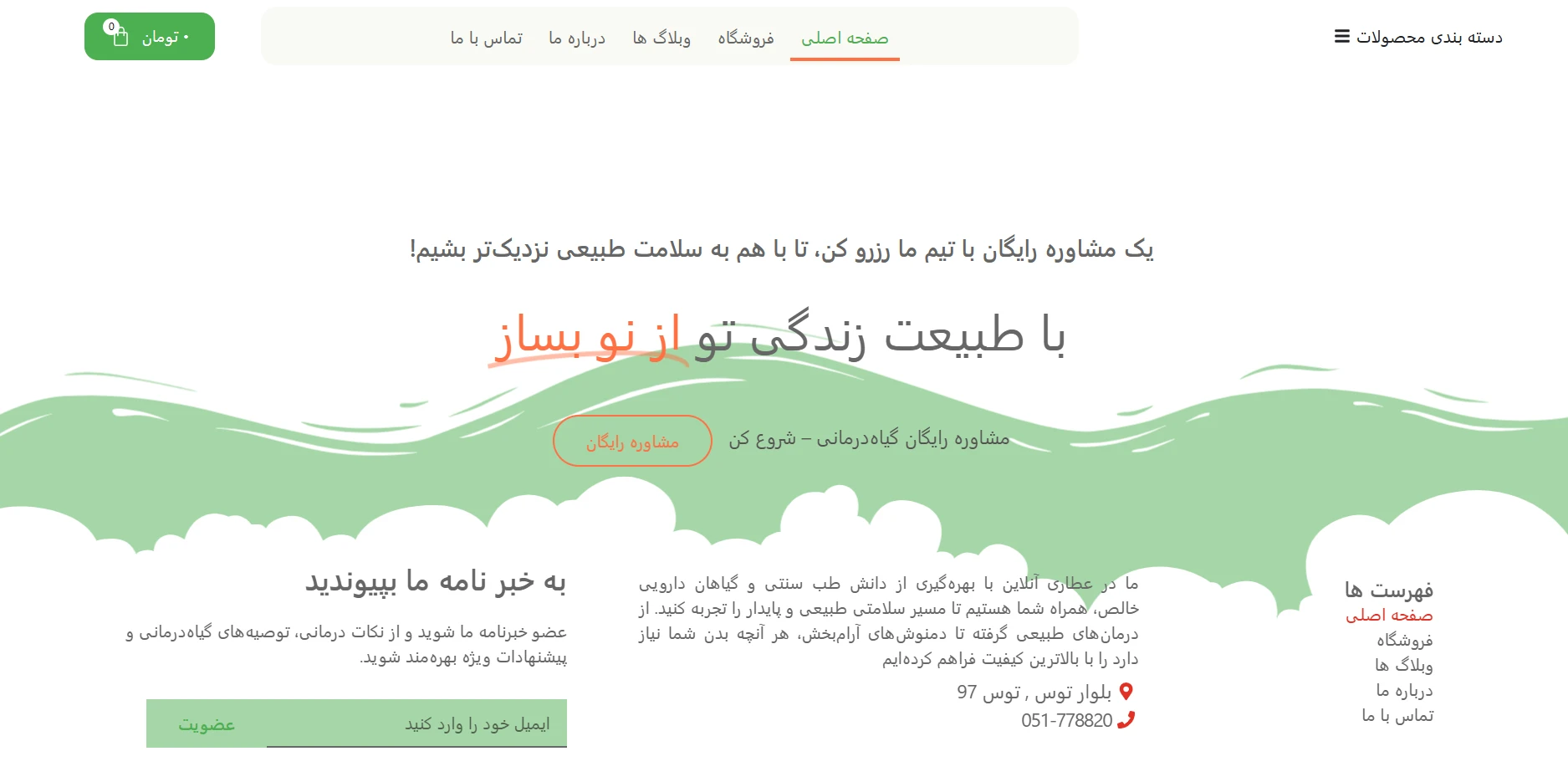 سایت ساخته شده با وردپرس عطاری آنلاین ریسپانسیو و موبایل فرندلی سرعت بالای سایت به دلیل استفاده از قالب سبک (hello elementor) طراحی مدرن