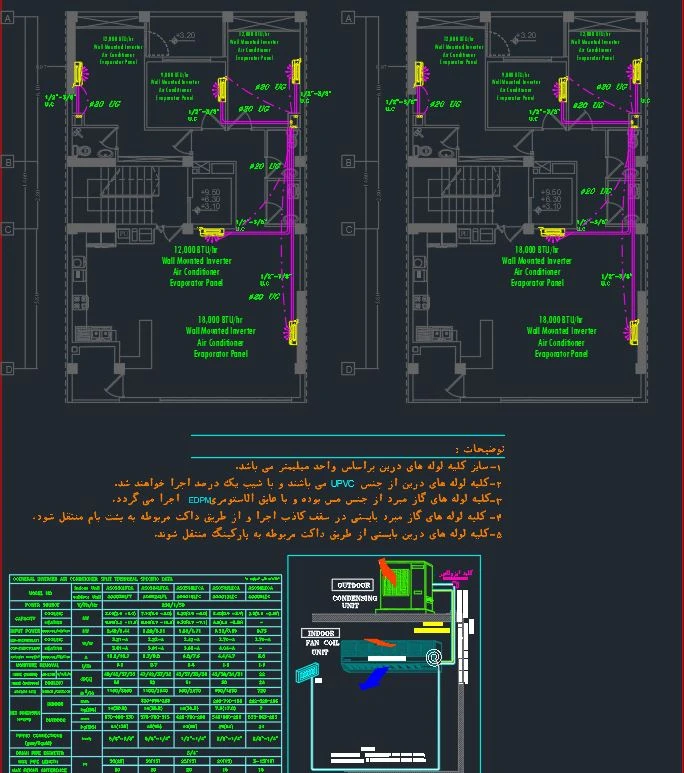 این پروژه شامل طراحی و محاسبات سیستم گرمایش ، سرمایش و تهویه مطبوع - سیستم لوله کشی آب و فاضلاب - سیستم اطفاء حریق - سیستم گاز رسانی و همچنین نقشه های جزییات و رایزر ها و علائم و نشانه ها می باشد.