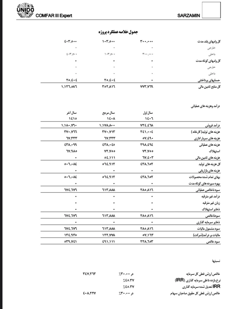 خروجي نرم افزار كامفار - بريف ريپورت نمونه كار قبلي