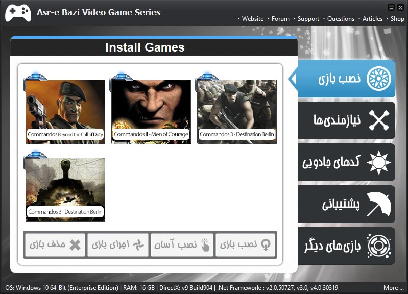 این آتوران به سفارش شرکت عصر بازی برای عرضه بازیهای کامپیوتری توسط زبان برنامه نویسی سی شارپ تهیه شده است. این آتوران قابل اجرا بدون کوچکترین مشکل بر روی تمام ویندوزها تا به امروز (ویندوز 11) را دارد و برای اجرا نیاز به هیچ دسترسی خاصی (ادمین) ندارد. نمایش مشخصات سیستم کاربر، حداقل نیازمندیها برای اجرای بازی و نصب آسان، اجرا و حذف بازی از طریق محیط آتوران، از ویژگیهای این آتوران قدرتمند است.