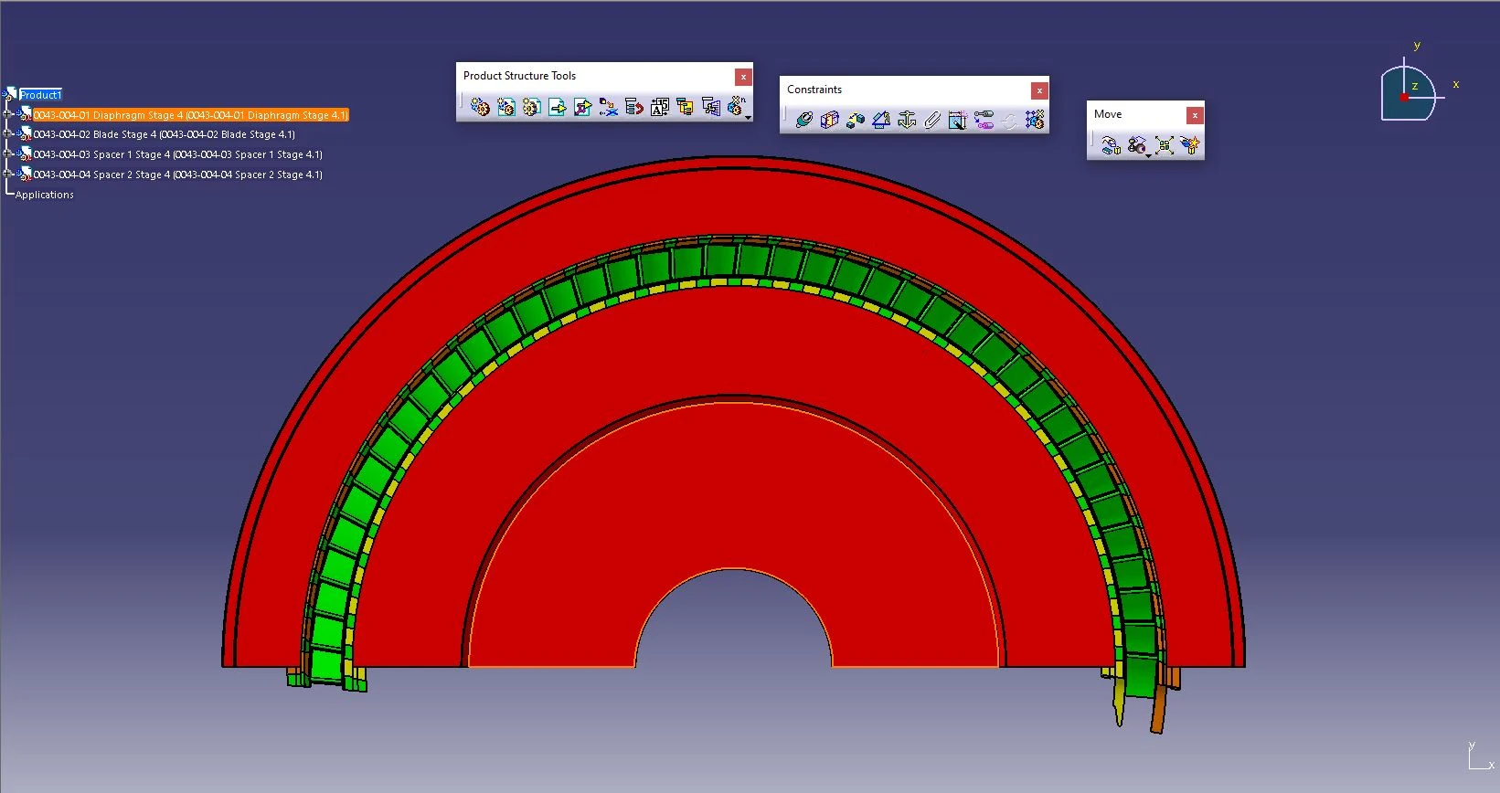 طراحی و مونتاژ دیافراگم توربین بخار به همراه تست تداخل قطعات (Clash Detection) در CATIA