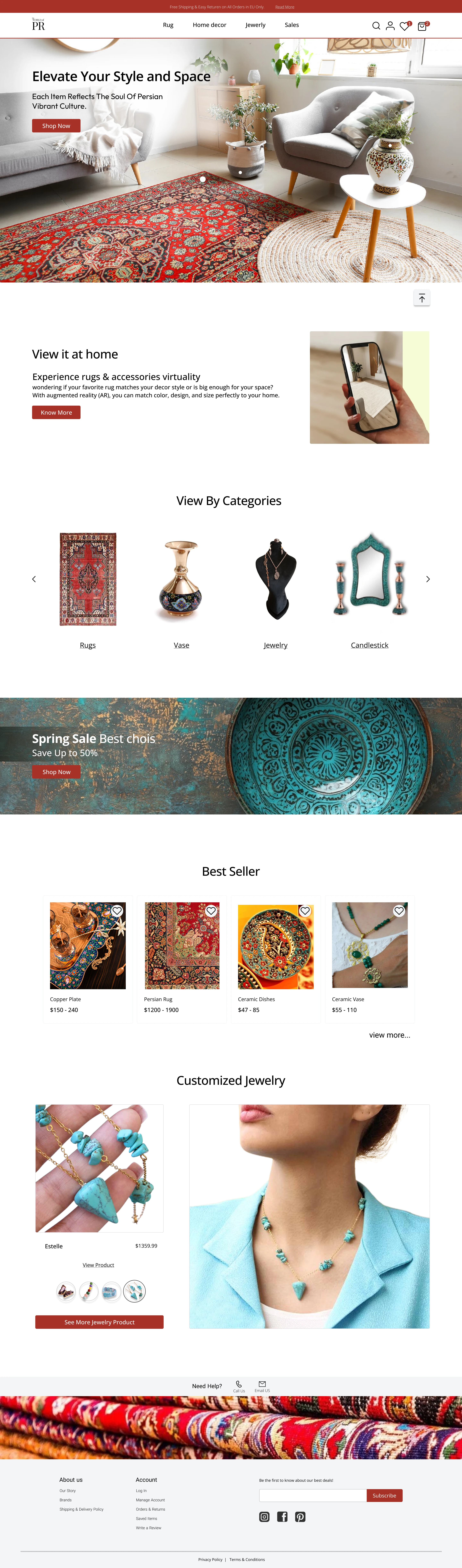PR is focused on selling Iranian handicrafts, including carpets, jewelry, and home decoration. The goal of this design is to create a smooth and efficient experience for customers.