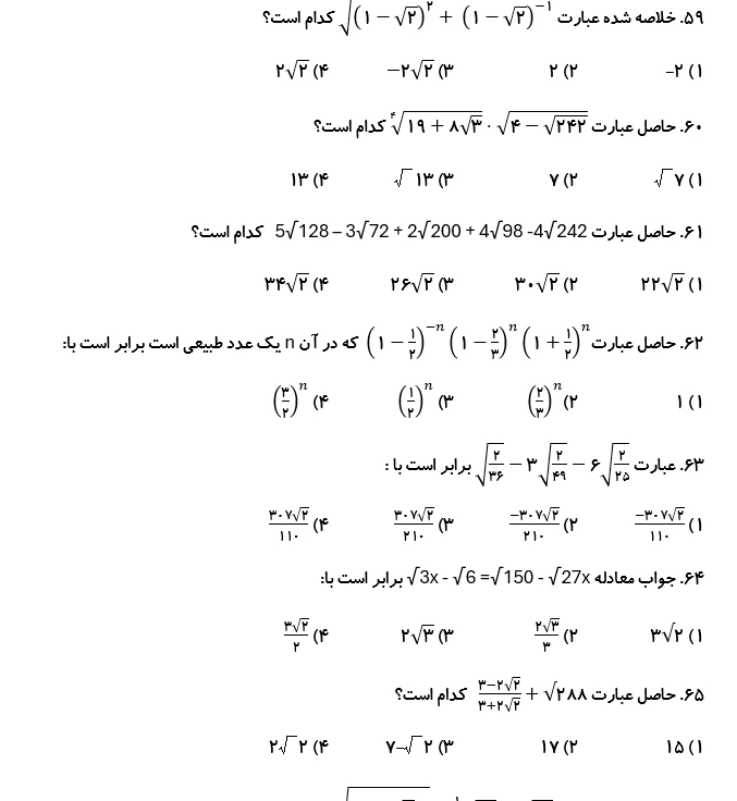 سلام این مجموعه سوالات رو با استفاده از فرمول نویسی در ورد تایپ کردم.