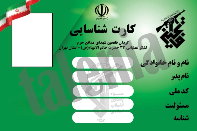 طراحی کارت شناسایی بسیج فاتحین مدافع حرم