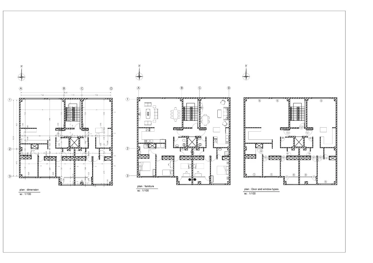 پلان پروژه سه واحدی ساختمان ۲ طبقه طراحی شده توسط arch studio