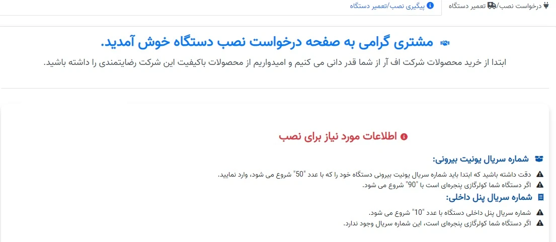 سرویس درخواست نصب و تعمیرات آنلاین