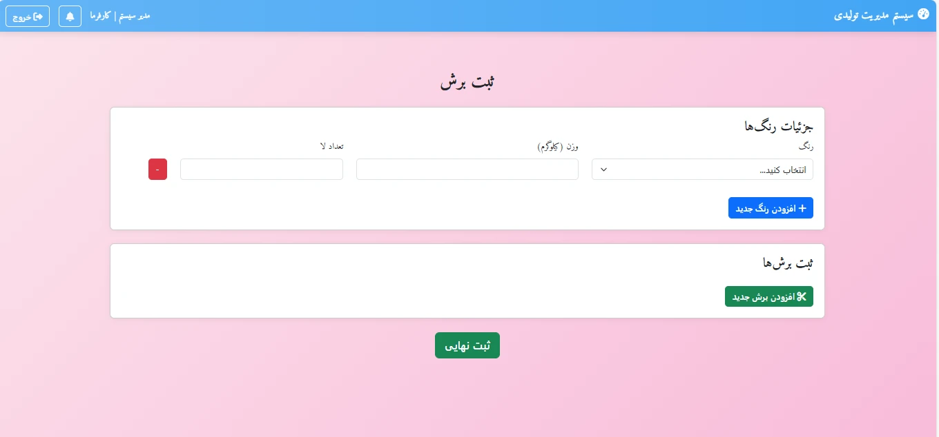 هرکاربر ئنل مخصوص به خوددارد و میتواند کار های خودرا با جزییات رنگ ثبت در قسمت برش ثبت کند ....