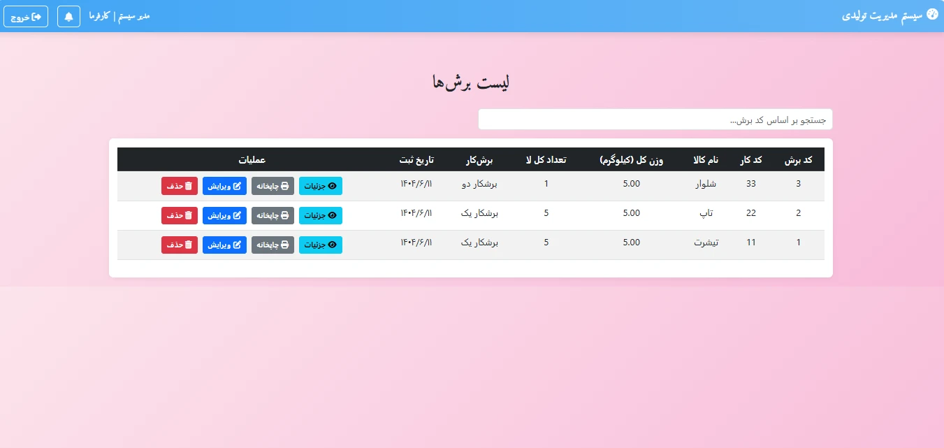 پلتفرم مدیریت جامع تولیدی مدیریت پوشاک