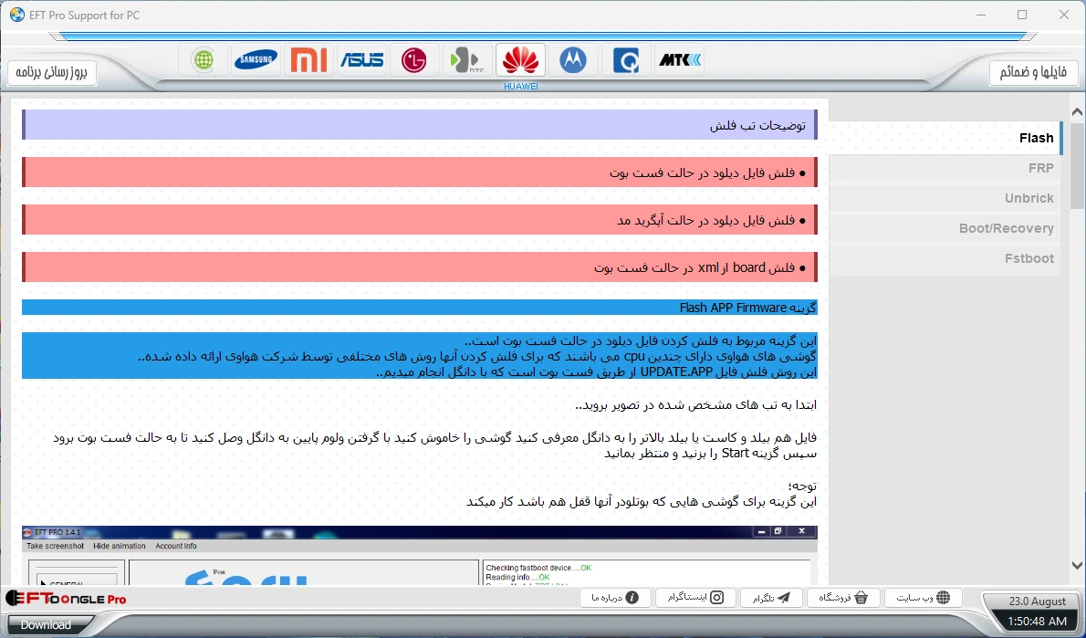 این آتوران به سفارش شرکت EFT برای نمایش محتوای متنی و تصویری تخصصی در زمینه تعمیرات موبایل توسط زبان برنامه نویسی سی شارپ تهیه شده است. این آتوران قابلیت اجرا بدون کوچکترین مشکل بر روی تمام ویندوزها تا به امروز (ویندوز 11) را دارد و برای اجرا نیاز به هیچ دسترسی خاصی (ادمین) ندارد. امکان دستهبندی آسان محتوا، قابلیت ایجاد محتوای تو در تو به صورت چند لایه و امکان دریافت و بروزرسانی محتوا از طریق اینترنت برخی از ویژگیهای این آتوران قدرتمند است.