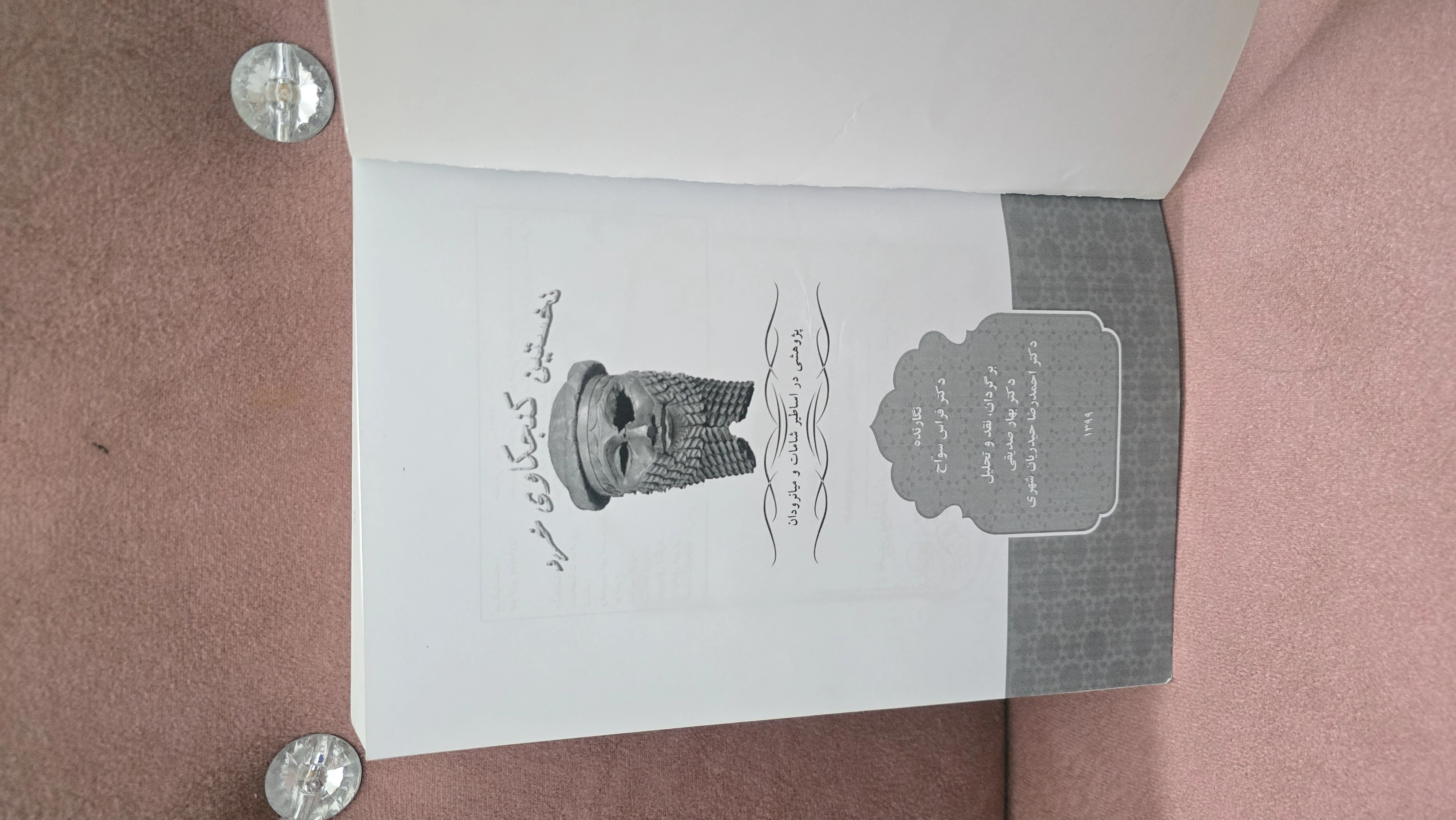 کتیبهها و نقوش باستانی در بخش بالایی جلد، لایهای روایی ایجاد میکنند که بیننده را از ابتدا وارد فضای محتوای کتاب میکند.