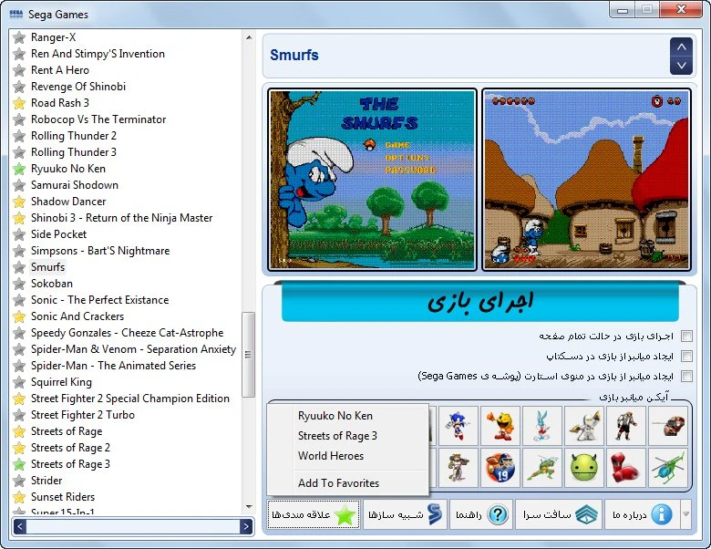 نرم افزار مجموعه کامل بازیهای سگا برنامهای برای نمایش، مدیریت و اجرای بازیهای سگا با یک کلیک ساده و بدون نیاز به انجام پیکربندی خاصی بر روی سیستم است که توسط زبان برنامهنویسی سی شارپ نوشته شده است. این نرم افزار دارای بیش از 1000 بازی محبوب و پر طرفدار سگا است و علاوه بر امکان اجرای بازی توسط شبیهساز موجود، امکان اجرای بازی توسط شبیهساز مورد نظر را نیز دارد. همچنین امکان جستجو در بازیها، افزودن آنها به علاقهمندیها، ایجاد میانبر از بازیها در دسکتاپ و افزودن بازیهای بیشتر به برنامه را دارد.