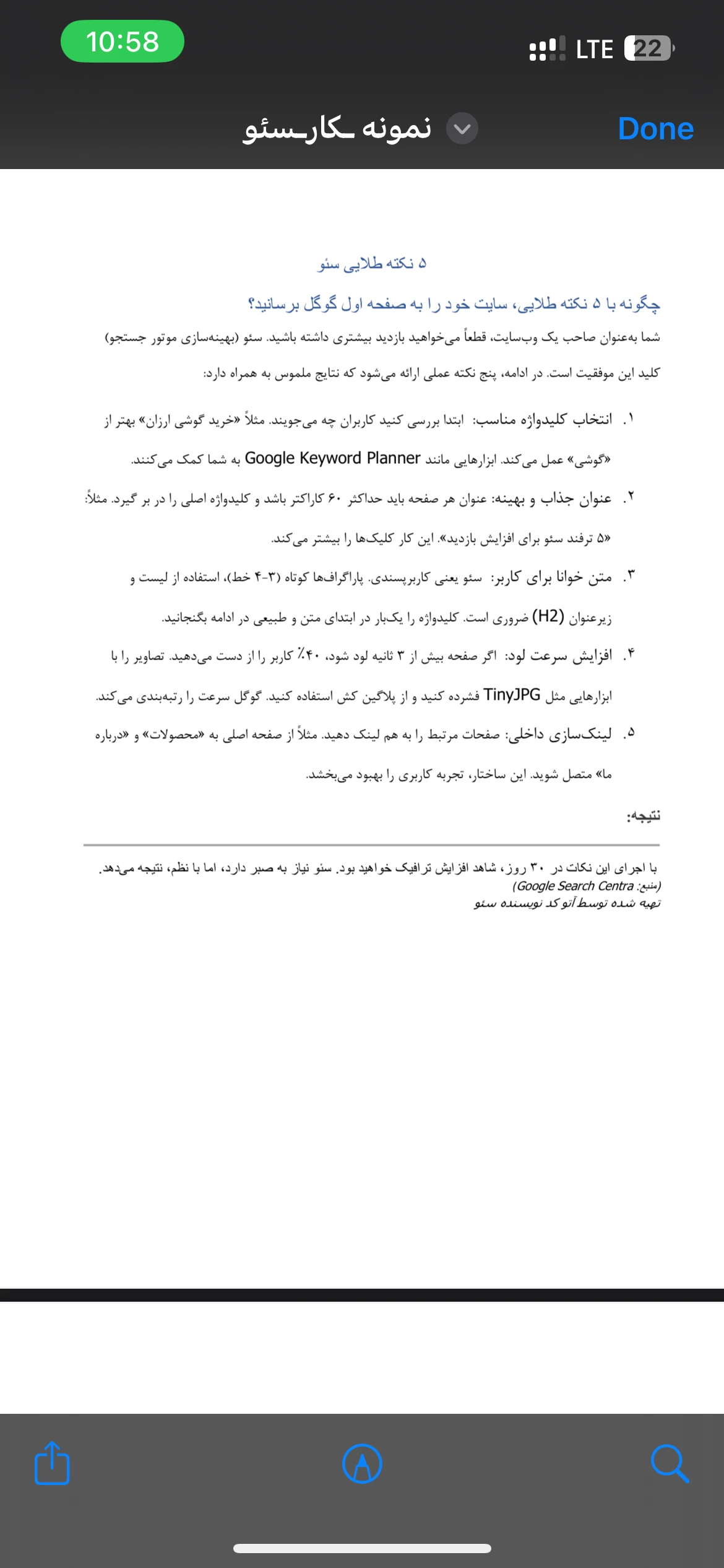 نمونه کار مقاله در رابطه با سئو
