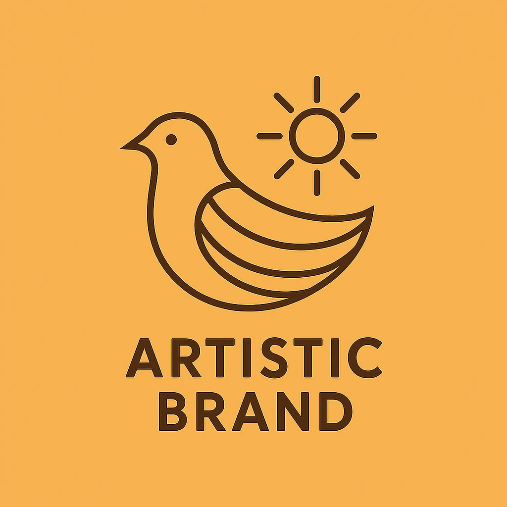 لوگوی «ARTISTIC BRAND» با طراحی مینیمال و رنگهای گرم، نمادیست از خلاقیت، آزادی و انرژی درونی.