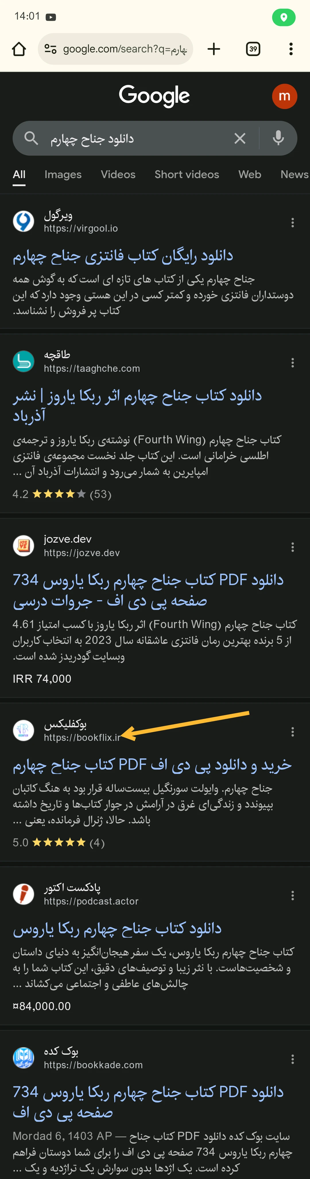 با استفاده از نکات اصلی سئو پشت کار تونستم خیلی از کلمات کلیدی اصلی سایت و محصولات سایت بوکفلیکس که یک سایت کتاب هست رو در صفحه اول گوگل و بین لینک های یک تا ۵ قرار بدم