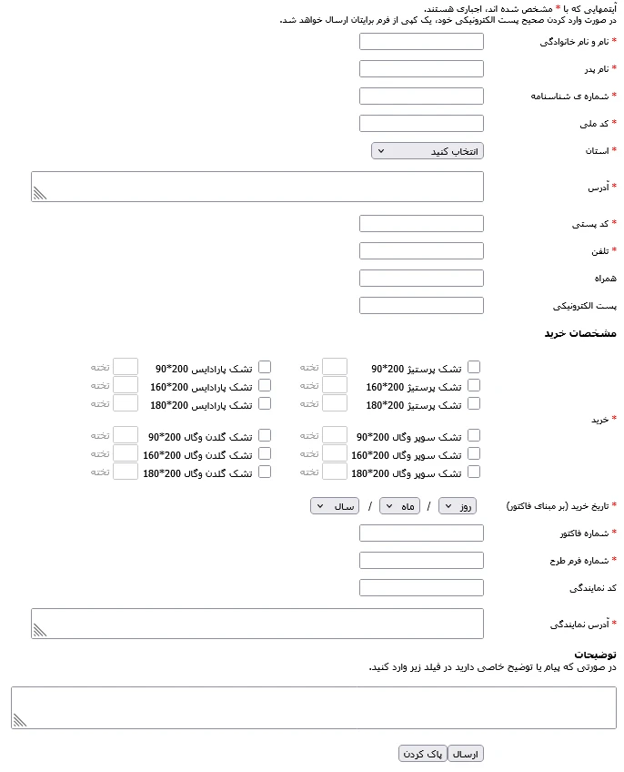 طراحی فرم استفاده از گارانتی محصولات مجموعه صنعتی وگال در سال 1386