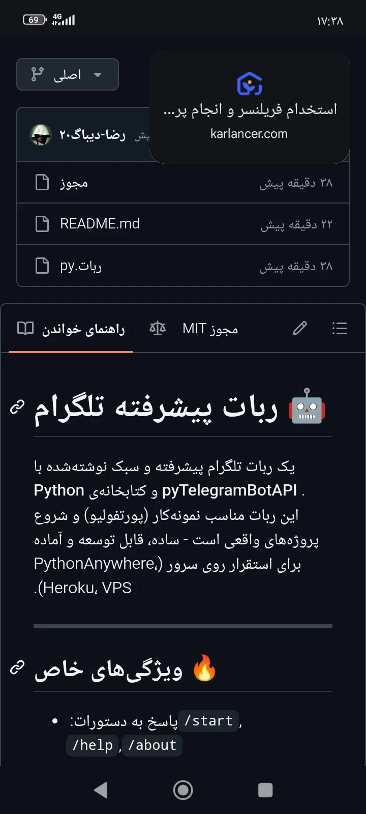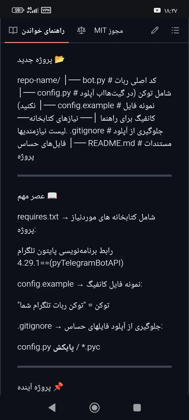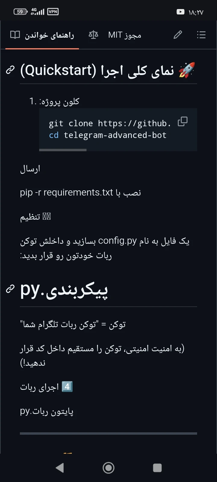 این پروژه با استفاده از telebot که یکی از کتابخونه های پایتون در حوضه ساخته ربات تلگرام هست ساخته شده