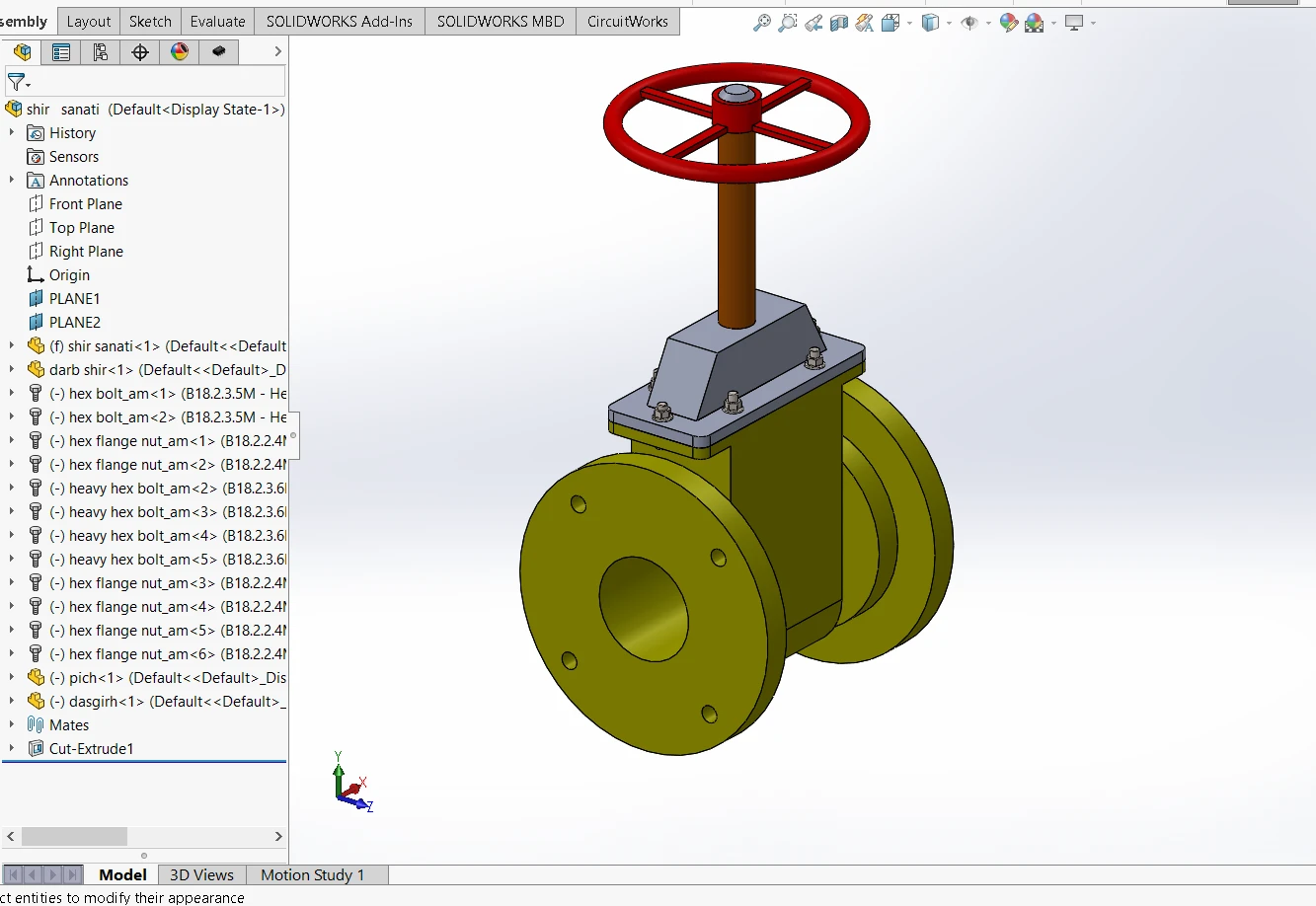 یک نمونه شیر صنعتی هست که مشخصاتش توسط مشتری داده شده و من ان را در سالیدورکس به صورت سه بعدی طراحی کردم