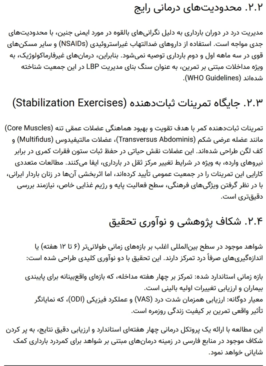 - تسلط به منابع علمی معتبر در حوزه ورزش درمانی و بارداری