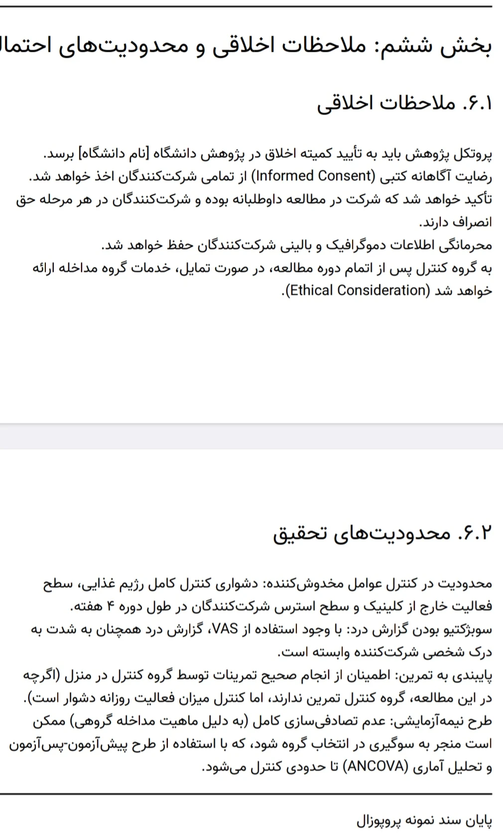 فایلها بهصورت ورد قابل ویرایش ارائه میشوند و ساختار علمی استاندارد، ارجاعدهی دقیق، و زبان تخصصی رعایت شده است. این نمونهکار برای نمایش توانایی در نگارش علمی، تحلیل دادهها، و طراحی تمرینات توانبخشی تنظیم شده است.