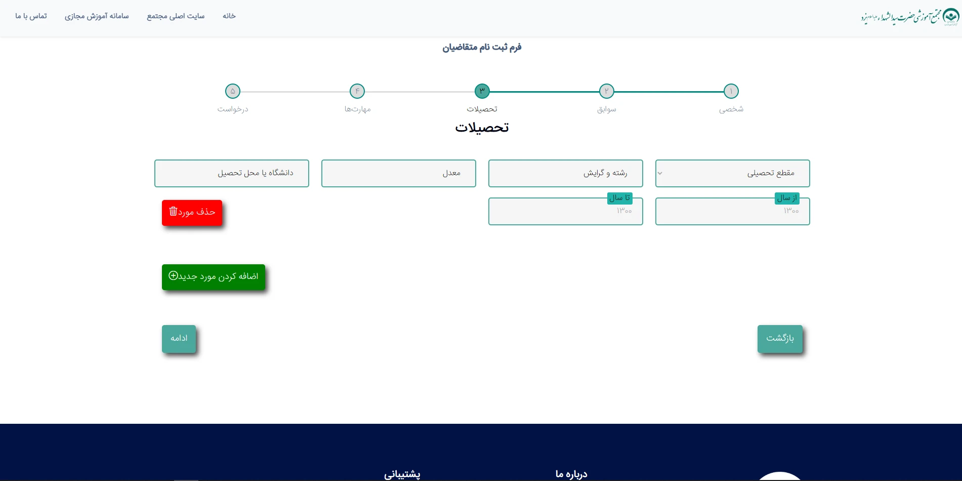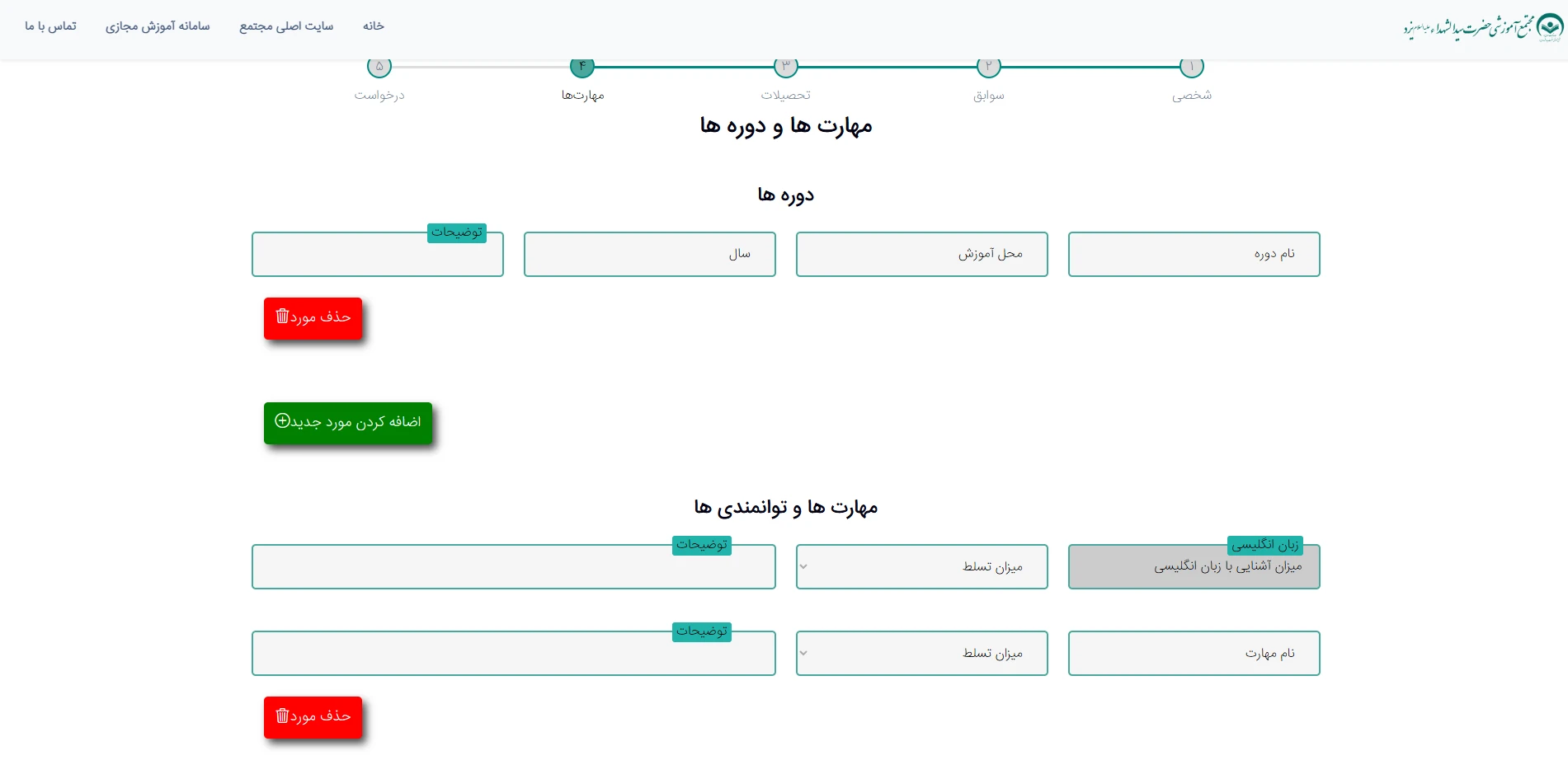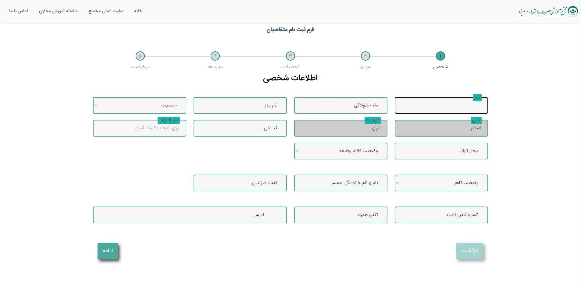 فرم برای ثبت اطلاعات