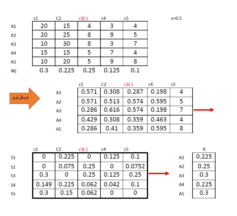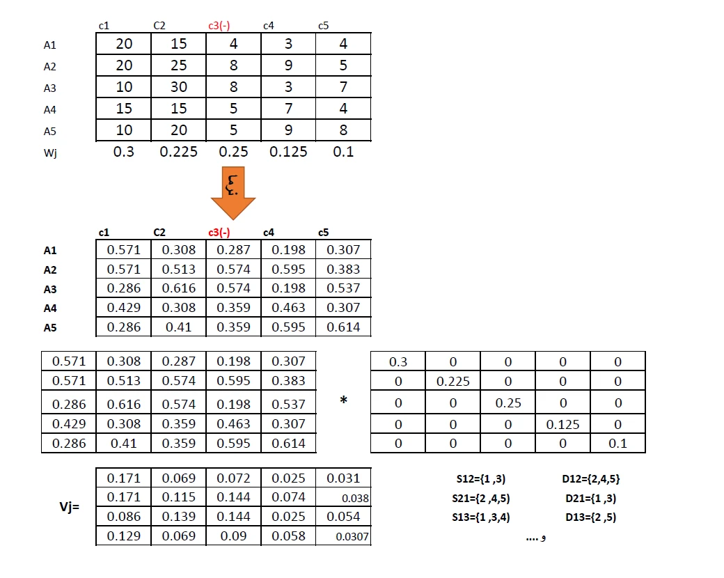 پروژه حل مساله های تصمیم گیری چند معیاره (MCDM) برای ماتریس های تصمیم گیری داده شده