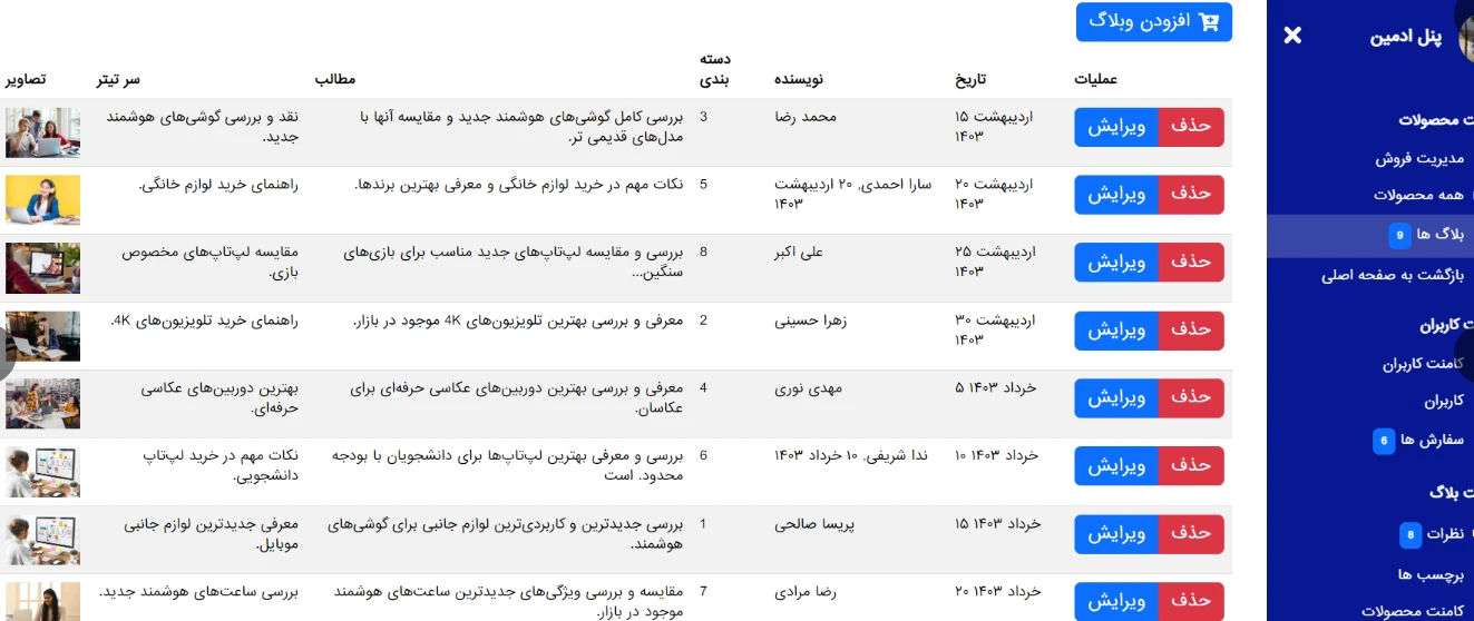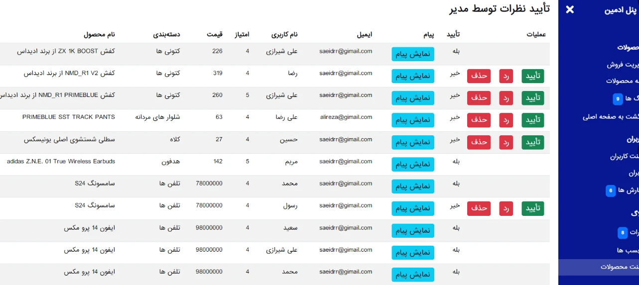 • پنل مدیریت جامع برای مدیریت محصولات، سفارشات و کاربران