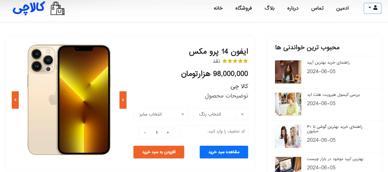 فروشگاه اینترنتی کالا چی یک پلتفرم تجارت الکترونیک کامل و پیشرفته شبیه به دیجی کالا است. این سیستم شامل: