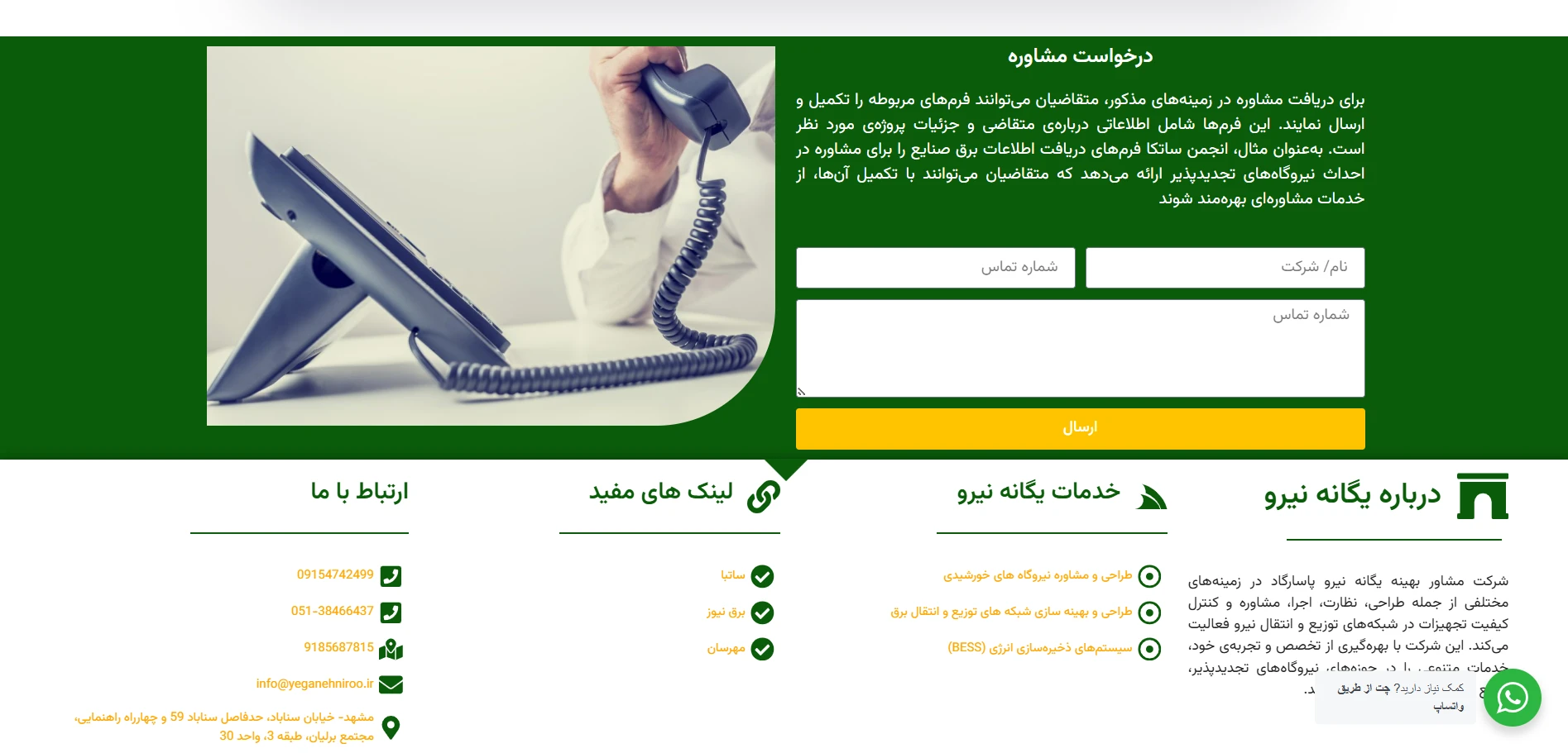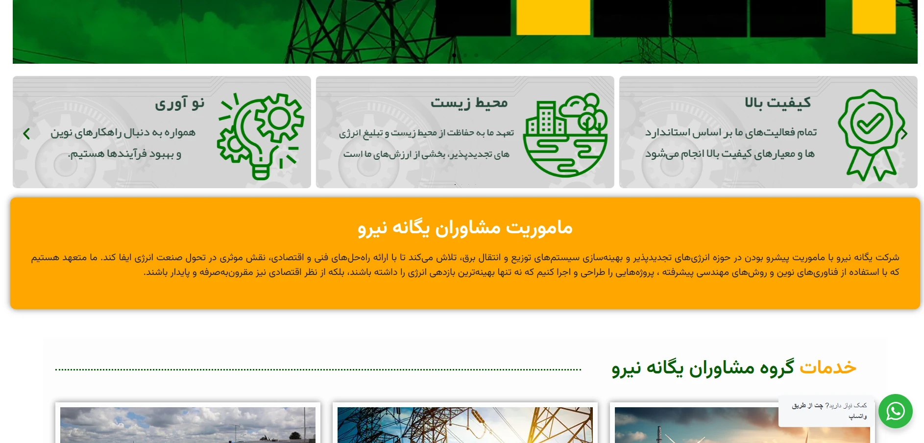 🔧 این سایت با توجه به نیاز مخاطبان صنعتی و تخصصی طراحی شده و تمرکز اصلی آن بر اعتمادسازی، نمایش تجربه و جذب مشتریان در حوزه انرژیهای نوین است.