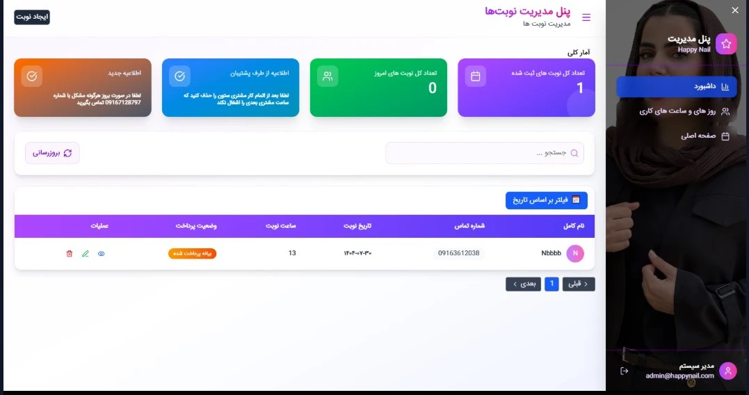 لتفرم نوبتدهی سالن زیبایی یک سیستم جامع برای مدیریت هوشمند نوبتها و خدمات سالنهای زیبایی است. این سیستم شامل: