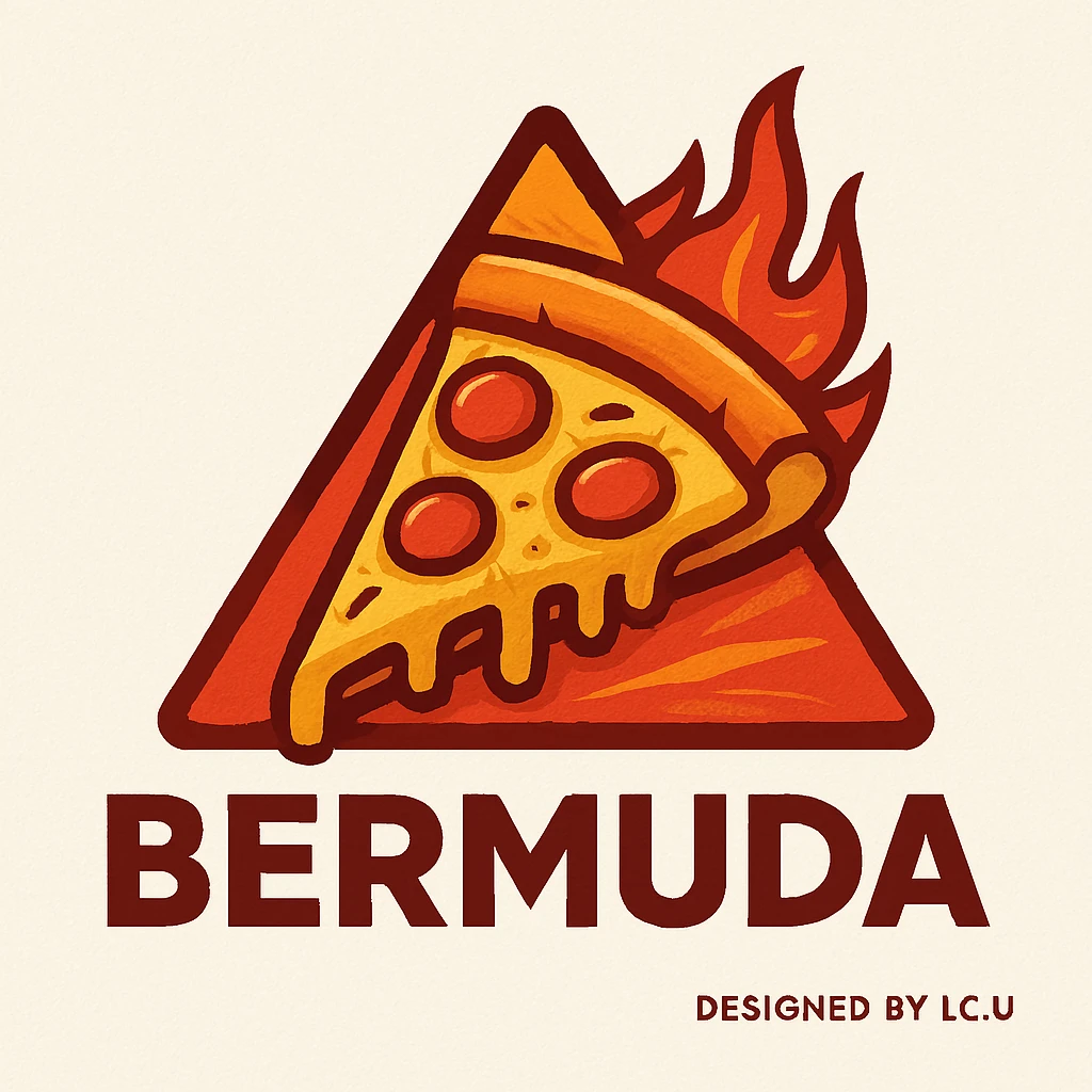 طراحی برند و لوگو برای پیتزا و فست فود برمودا توسط تیم I.C.U با استفاده از ابزار های AI