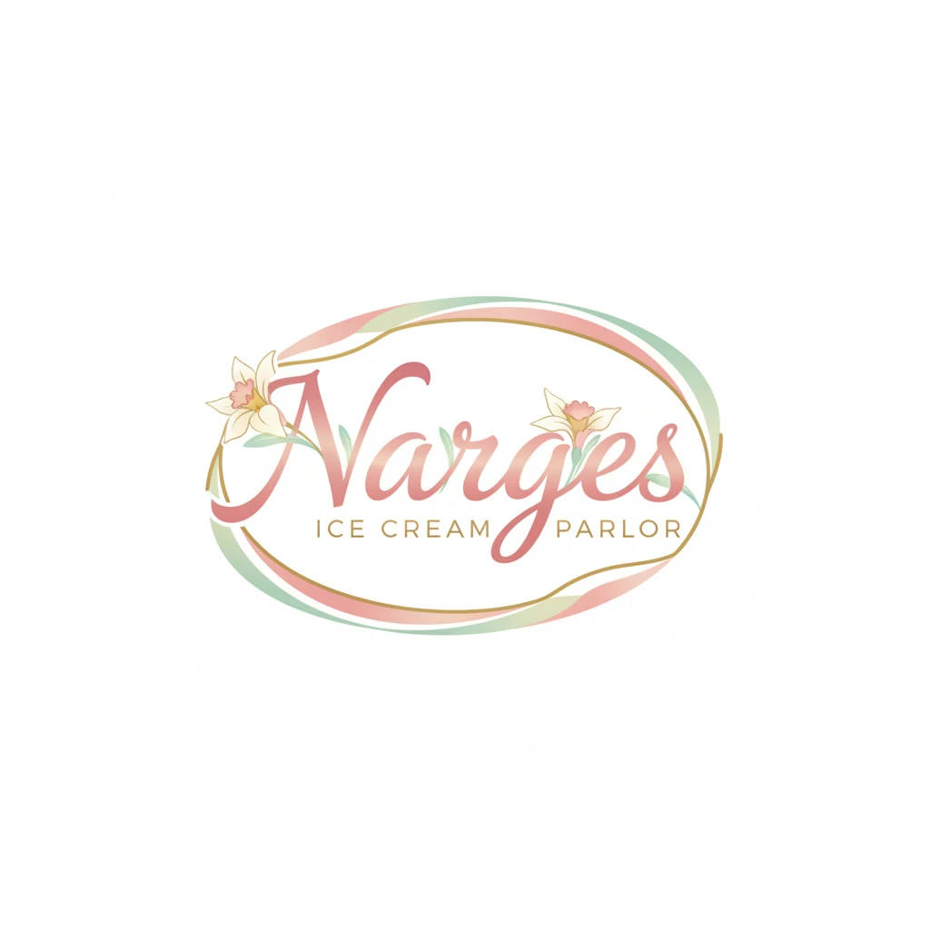 لوگوی بستنی نرگس با استفاده از رنگهای خاص برای ایجاد حس به یاد ماندنی استفاده از گل نرگس و فونت خاص برای کیفیت کار شما و مطابق توضیحات و سلیقه شما