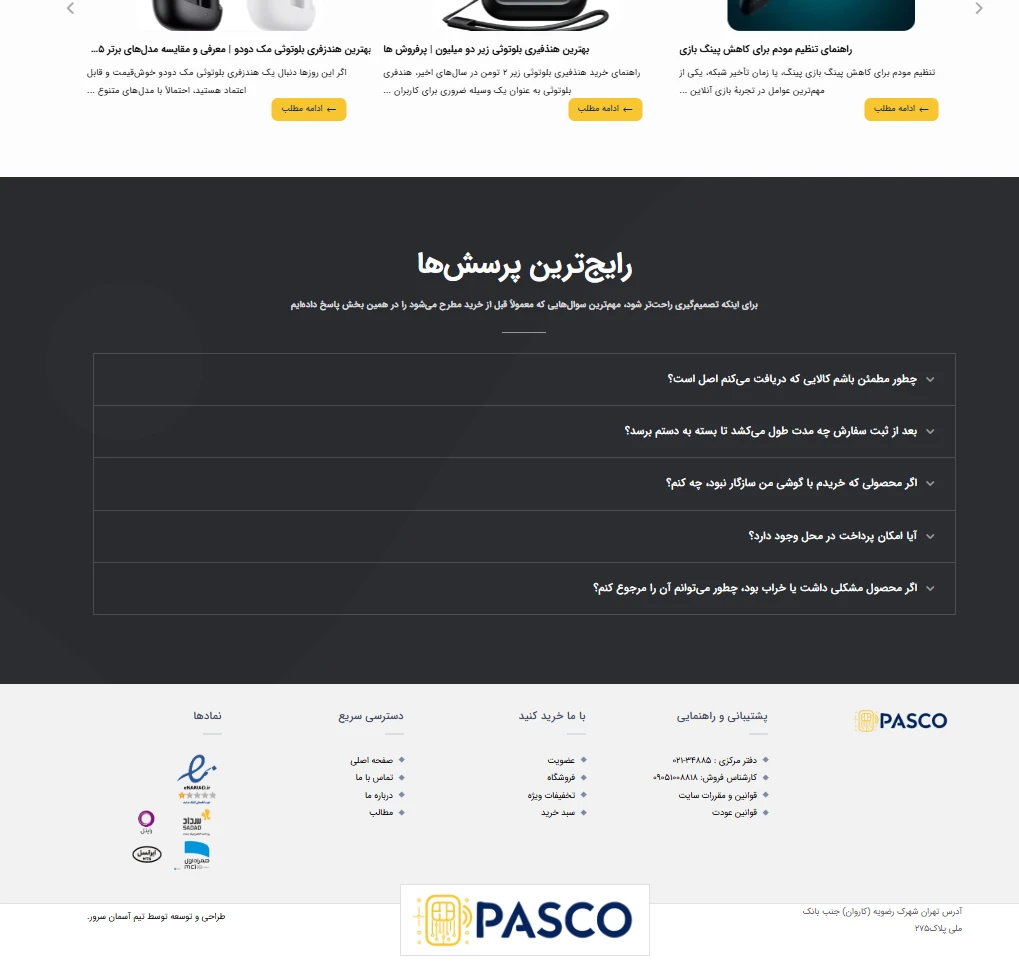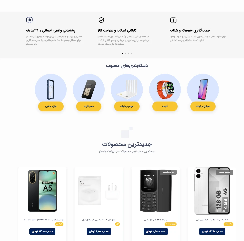 سایت وردپرسی و فروشگاهی پاسکو که دارای ویژگی های اختصاصی میباشد که در خود وردپرس وجود نداشت و با کدنویسی برای اون اضافه شد»