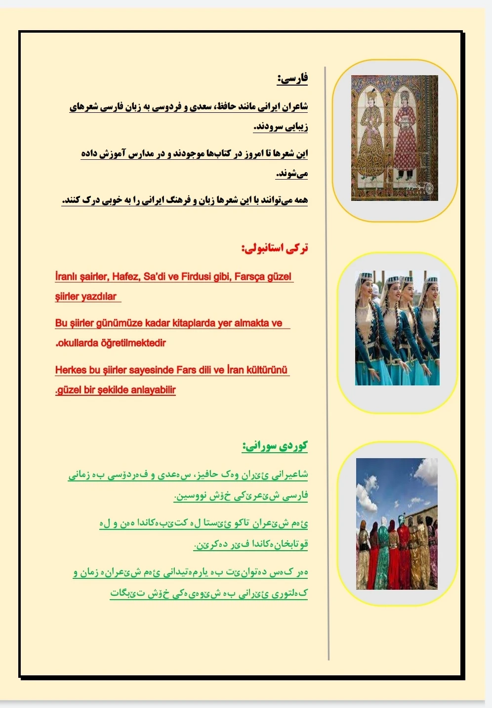 تسلط کامل به ساختار و ظرایف زبانهای ترکی و کوردی