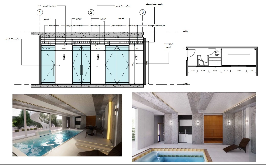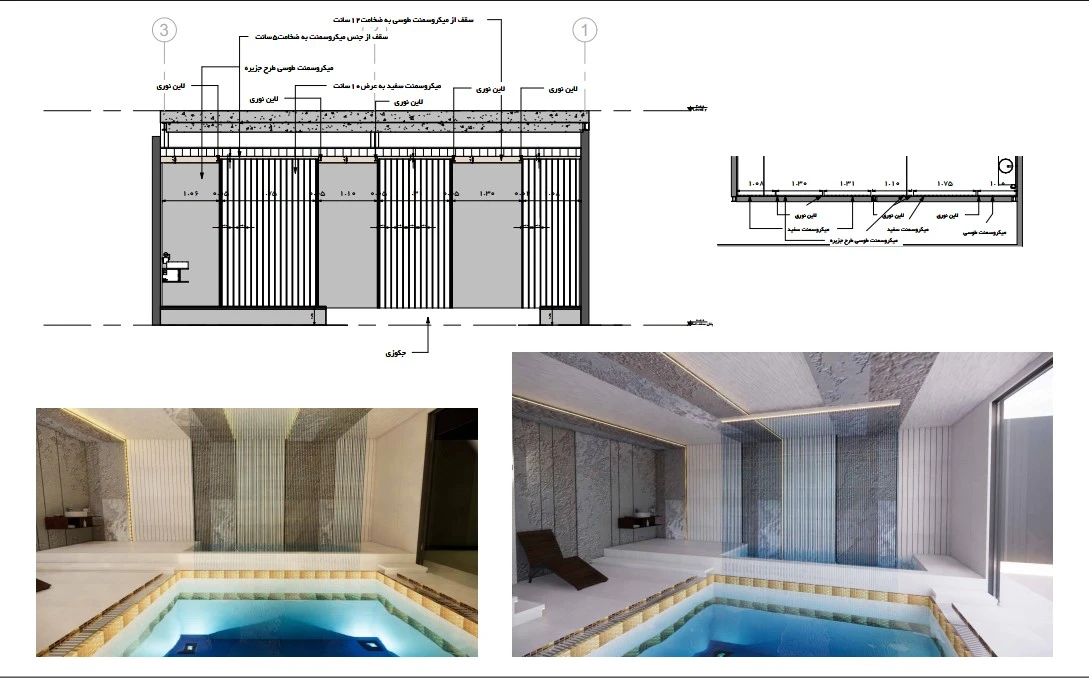 در این نمونهکار، پلان معماری بههمراه مدل سهبعدی فضاهای داخلی ارائه شده است.