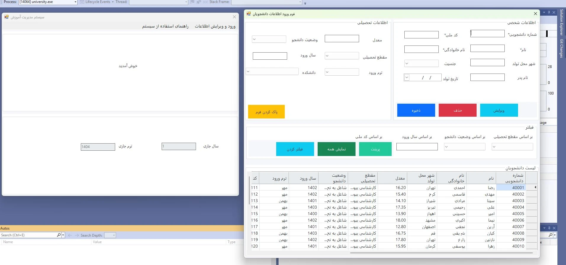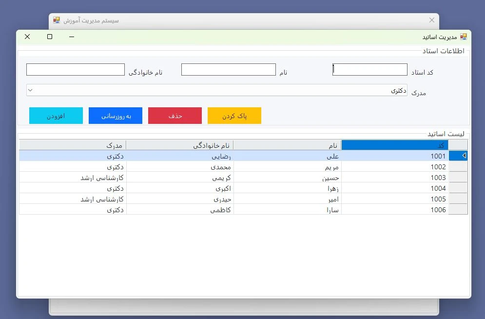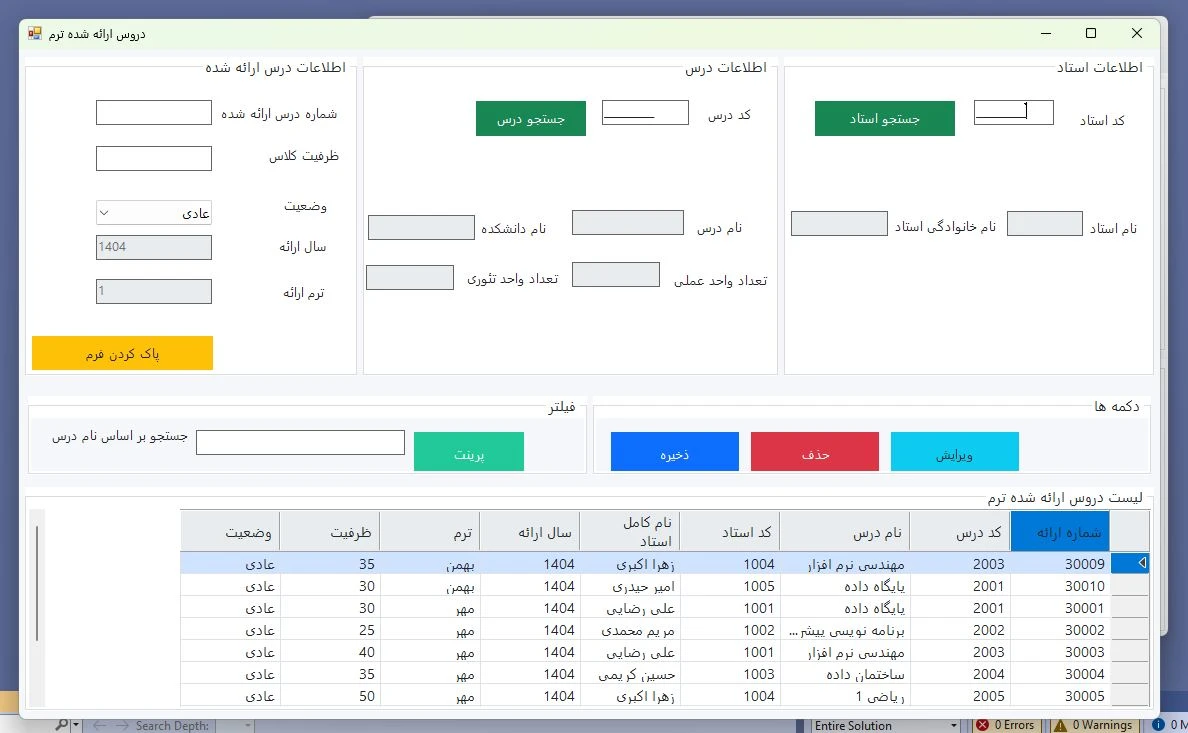 پروژه سی شارپ- ثبت دانشجو و اساتید