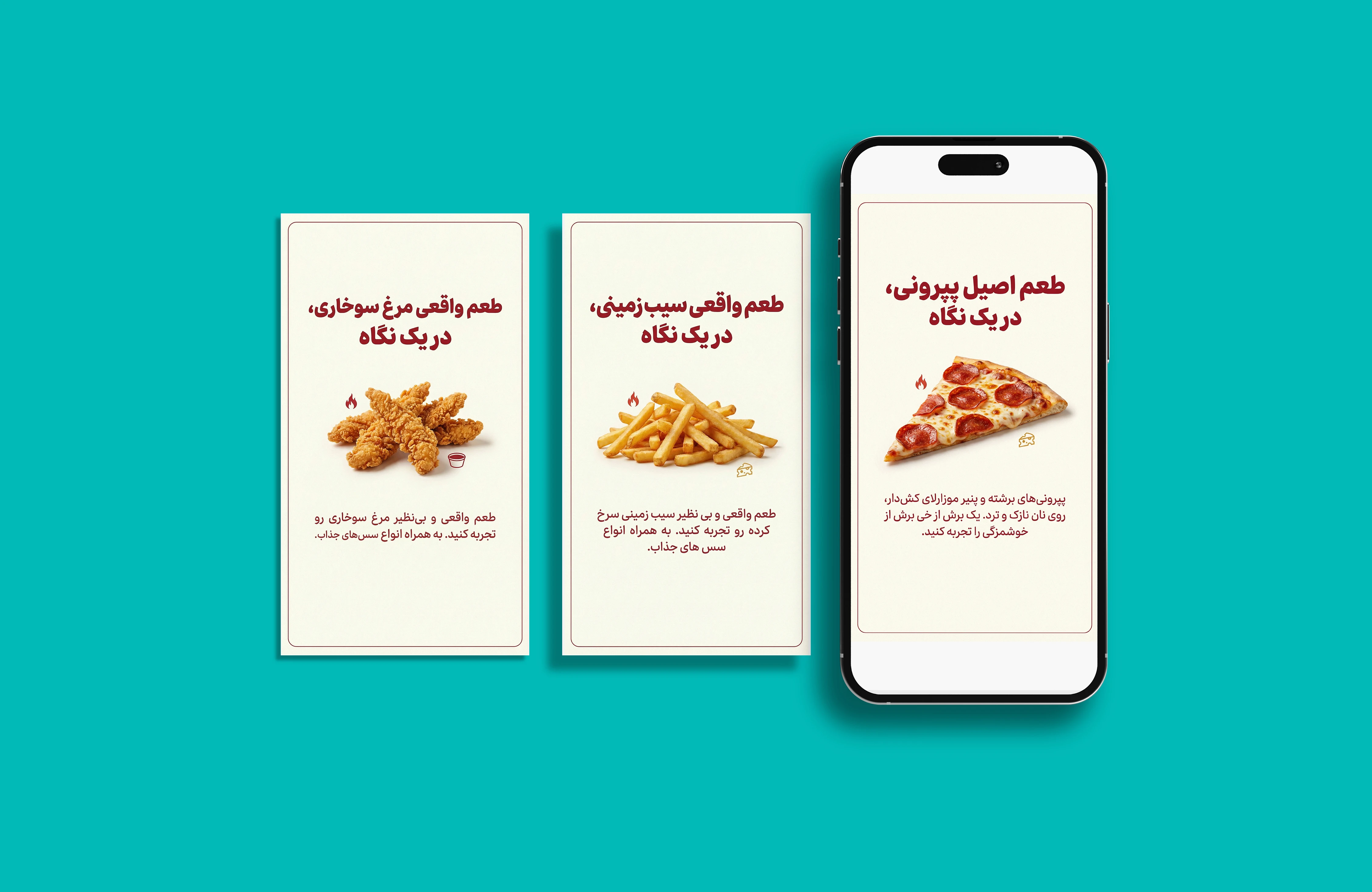 استوری های سراحی شده توسط بنده برای محصولات پیج فست فودی و رستوران