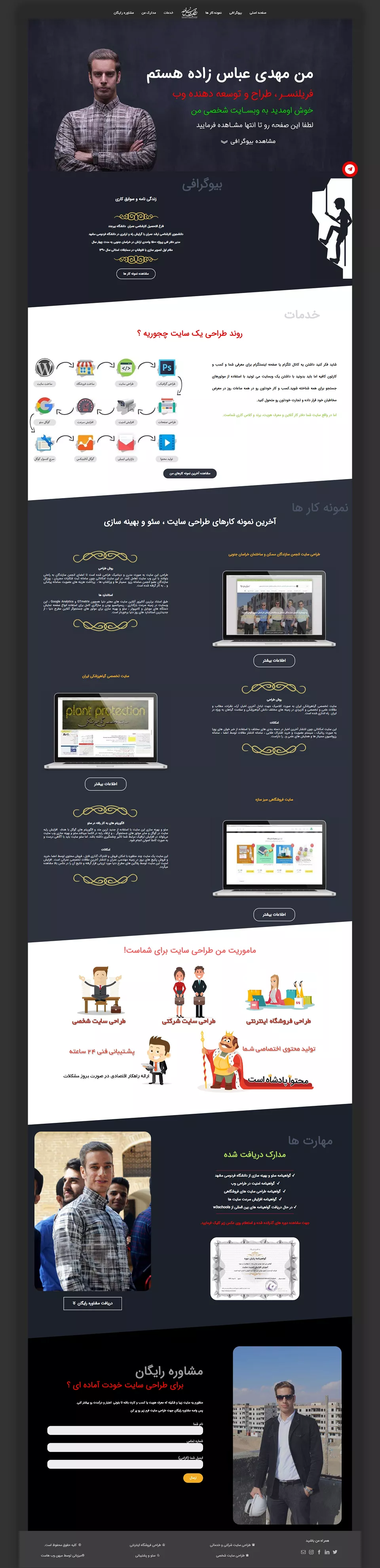 این سایت جهت معرفی نمونه کار ، معرفی رزومه و سوابق کاری و بیوگرافی ایجاد شده است. در این سایت از مهارت لندینگ پیج کمک گرفته شده است که تکنیک های خاص خود را دارد.