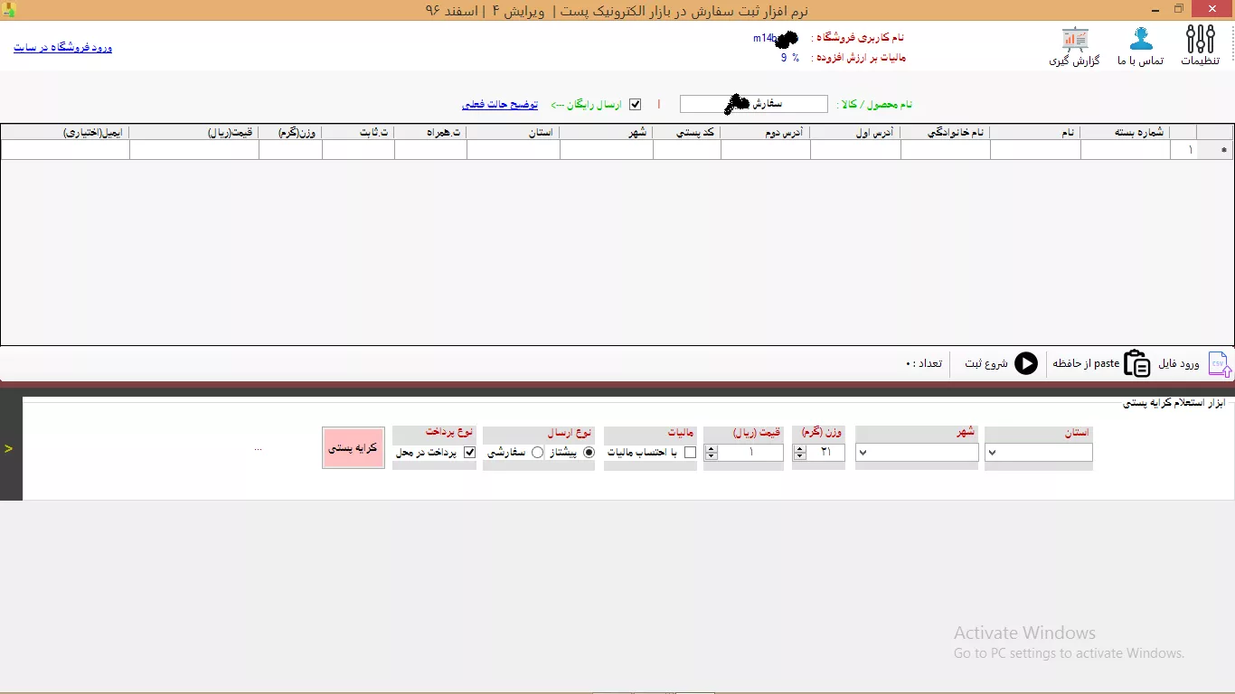 نرم افزار ثبت سفارش در سایت بازار الکترونیکی پست
