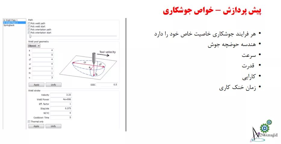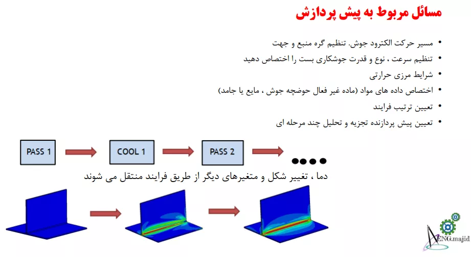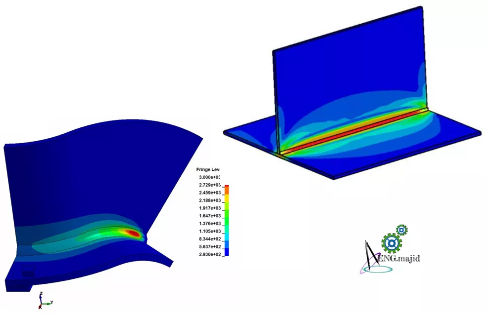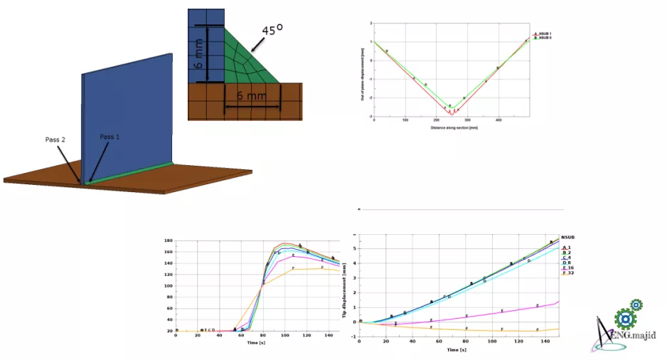 این پروژه جامد شدن مواد پرکننده را هنگام خنک شدن ، هدایت گرما و تغییر شکل با محاسبه تنشهای پسماند پس از ایجاد جوش شبیه سازی می کند.